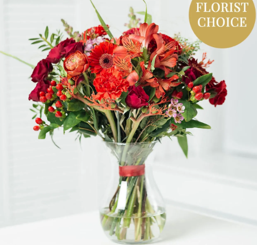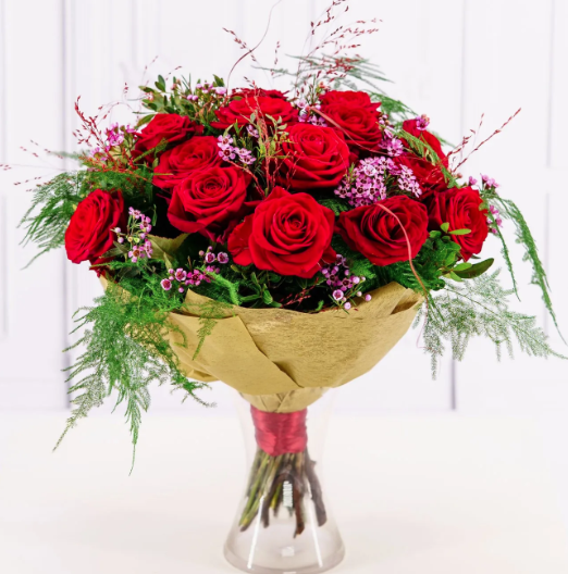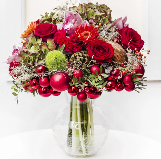 Discover the magic of the holidays with our "Christmas Romance" bouquet, which captivates with its intense shades of red and elegant bauble accents.